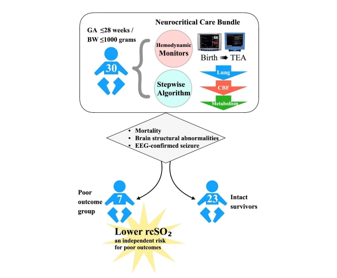 Finding: We used a neurocritical care bundle from birth to discharge or term-equivalent age. Infants with poor outcomes had significantly lower rcSO2 values.