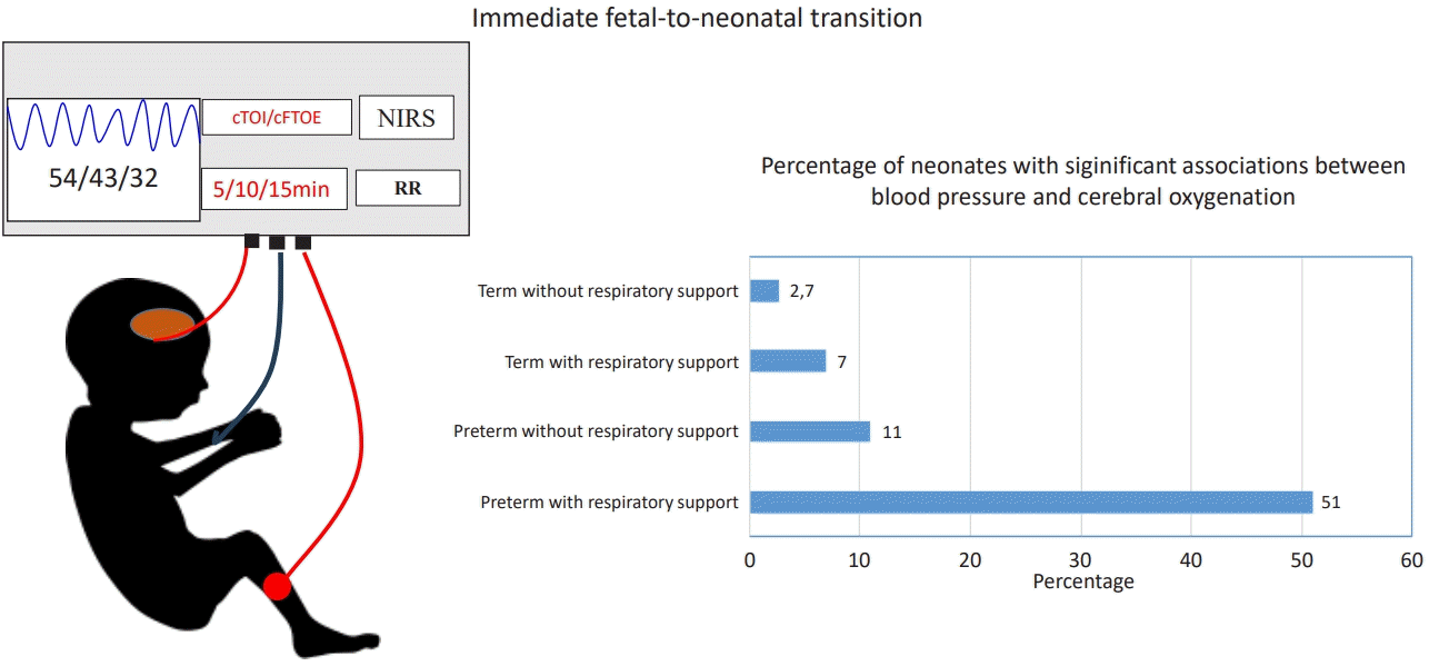 Cerebral tissue oxygenation is primarily determined by 2 factors: oxygen delivery to the brain and cerebral oxygen consumption [1]. Oxygen delivery depends on the oxygen content of the blood, which is affected by hemoglobin levels and arterial oxygen saturation (SpO2), as well as cerebral blood flow (CBF). CBF is mainly influenced by cerebral perfusion pressure (CPP) and cerebral vascular resistance (CVR). In neonates, the open cranial sutures and fontanelles provide the skull with flexibility to accommodate intracranial volume fluctuations, allowing intracranial pressure to be relatively negligible [1]. Therefore, CPP is mainly influenced by systemic arterial blood pressure (BP). CVR is regulated by different factors due to cerebral autoregulation (CA).