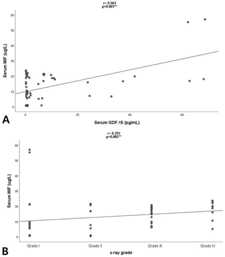Question: Do macrophage migration-inhibitory factor (MIF) and growth differentiation factor-15 (GDF-15) levels and their gene polymorphisms affect RDS among preterm babies? Finding: Significantly higher serum MIF and GDF-15 levels were observed in patients with severe respiratory distress syndrome (RDS). The mutant G- and C-alleles of GDF-15 rs4808793 C>G single nucleotide polymorphism (SNP) and MIF rs755622 G>C SNP were present at significantly higher frequencies in preterm neonates with RDS. Meaning: MIF and GDF-15 play a significant role in neonatal RDS and its severity. |