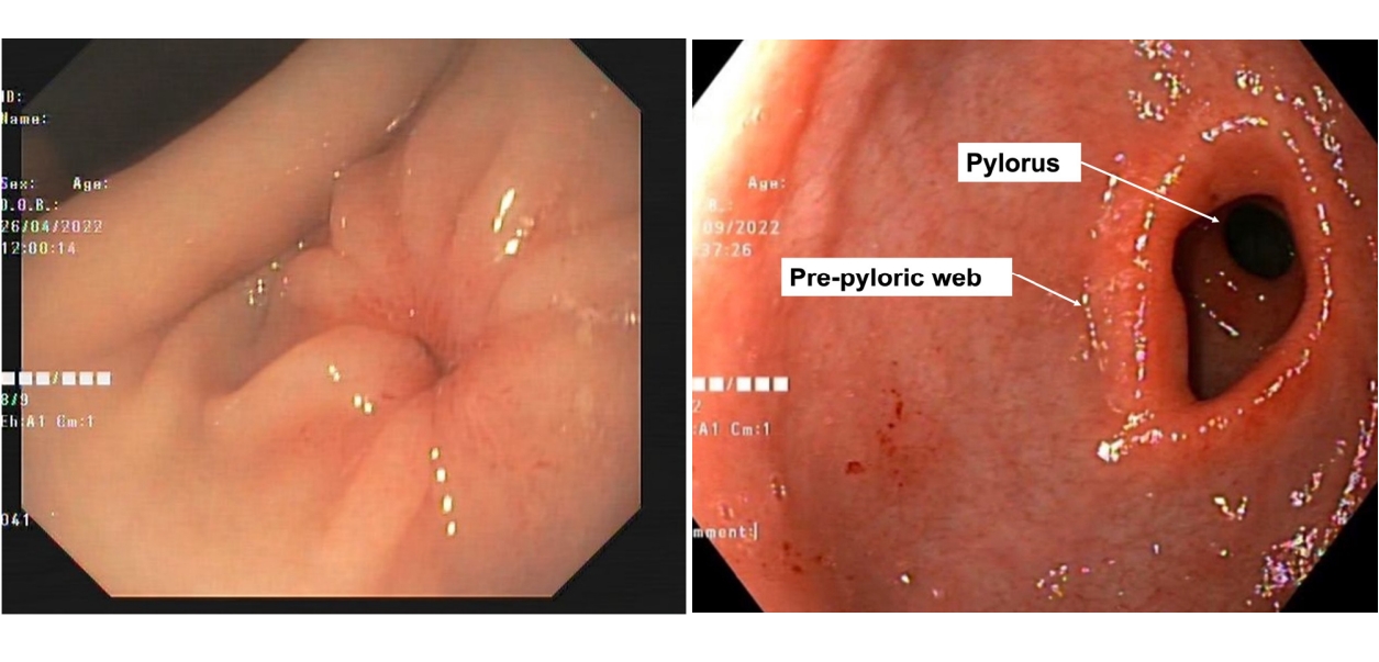 - Congenital antral web: rare cause of gastric outlet obstruction successfully managed with endoscopic balloon dilatation