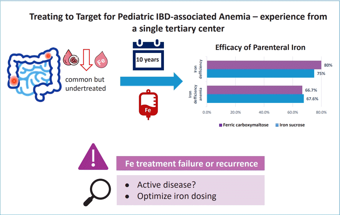 Meaning: Proactive screening and treatment of ID in pediatric IBD are essential. The Ganzoni formula likely underestimates the iron requirements of pediatric patients. Prospective trials are needed to optimize iron treatment dosing.